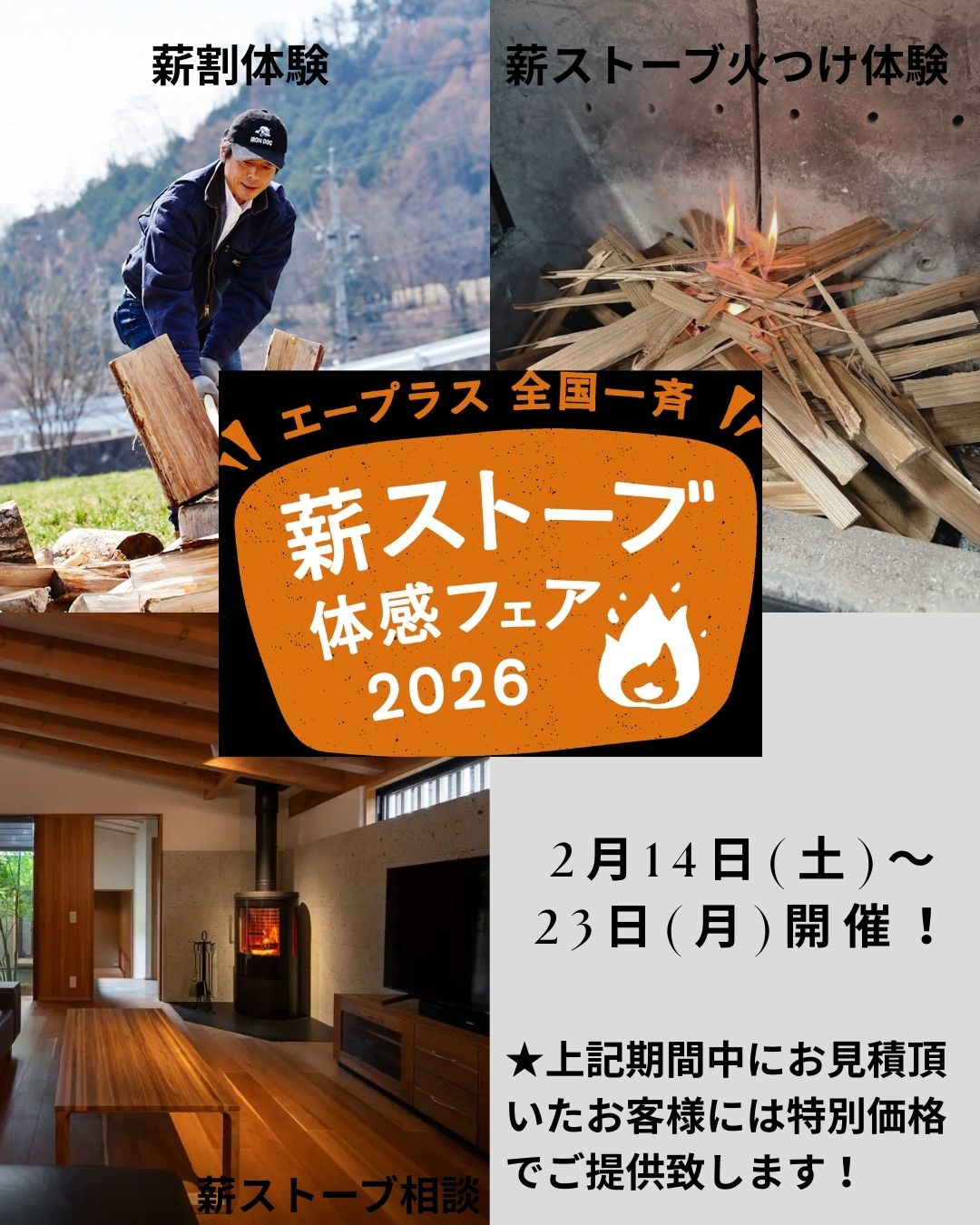薪ストーブ体験フェア2026(2月14日〜2月23日) 開催! 2026年1月26日 最終更新日時 : 2026年1月26日 adm_tutumi ショールームで、薪ストーブの暖かさを体感できるイベントです。 ご予約はこちら